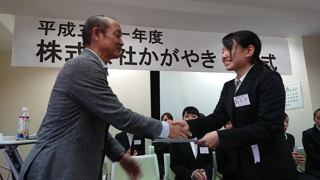 次回は3/30入社式です。2,3年後にはかがやきの主力社員として活躍してくれるよう、これからの成長がとっても楽しみです(^_^)